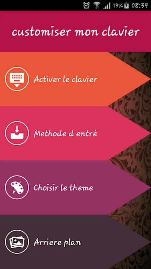With over 22 different types of keyboard themes. Customize the way you type and send messages to your friends !! Select the photo or the Gallery Click on a new photo and set as background on your keyboard.