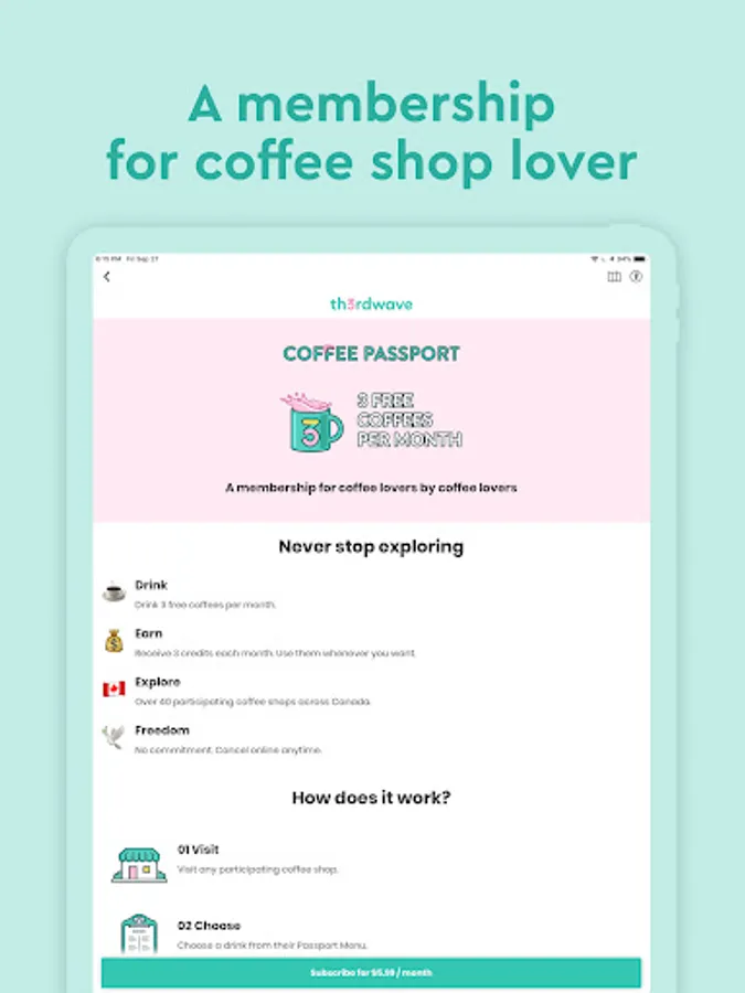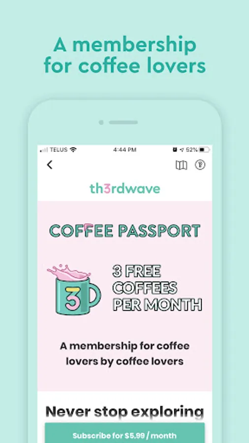 Never stop exploring cafés with Th3rdwave membership.