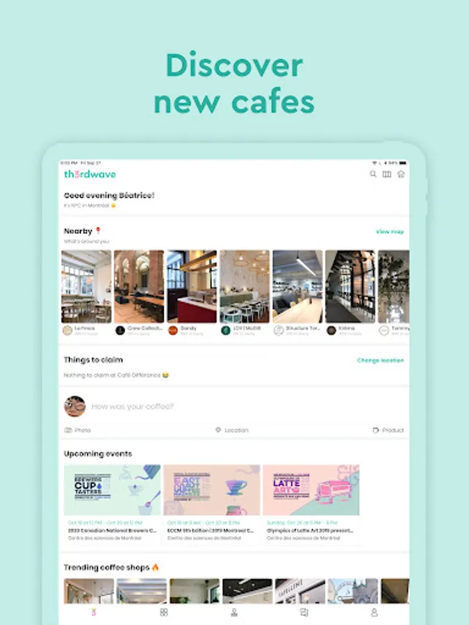 Whether you're in your neighborhood, around school, or even exploring a new city, Th3rdwave helps you find great cafés for your mood.