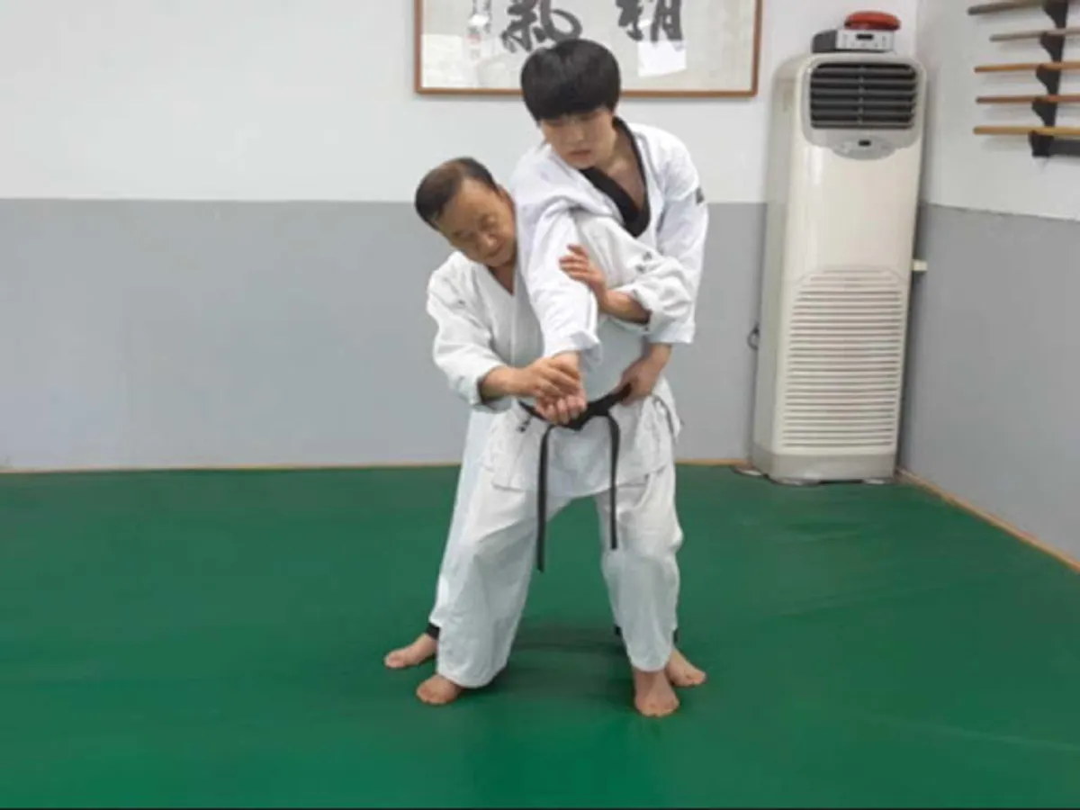 Grandmaster Kim, Nam Jai (9th Dan) reviews the basic skills of Hapkido training.
