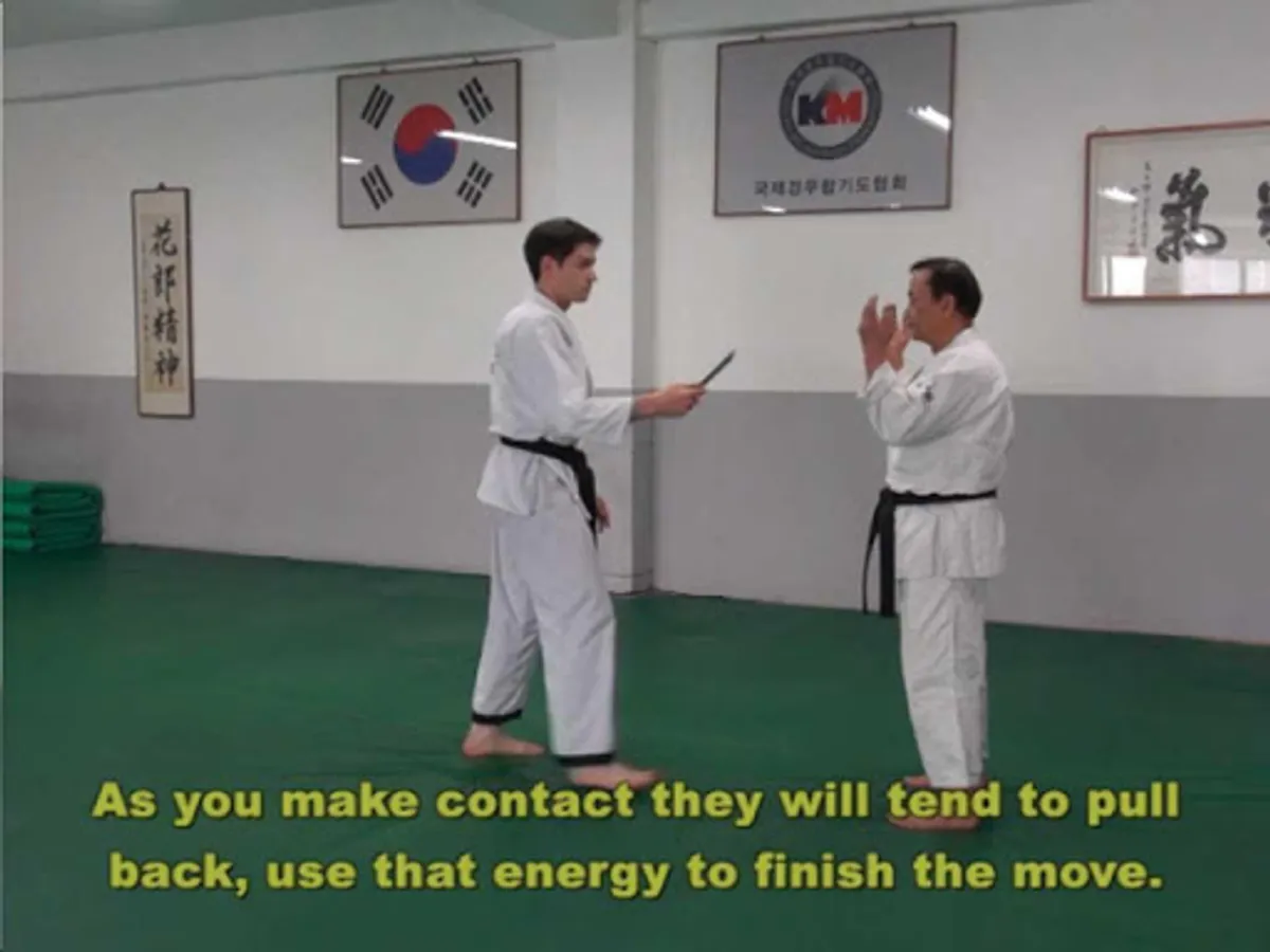 Grandmaster Kim, Nam Jai (9th Dan) demonstrates some advanced skills of Kyung Mu Kwan Hapkido training.