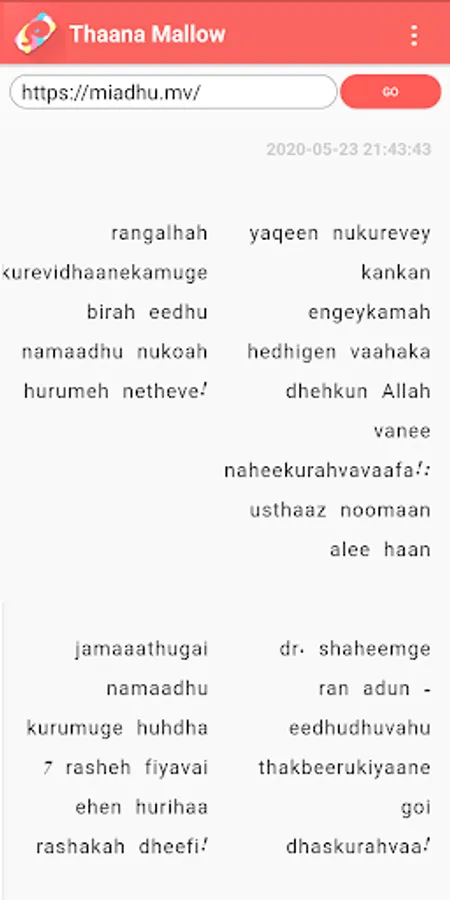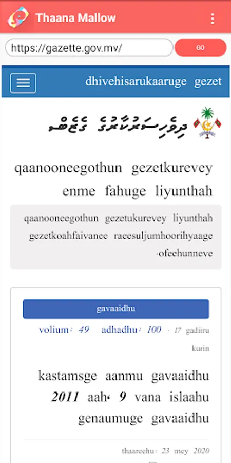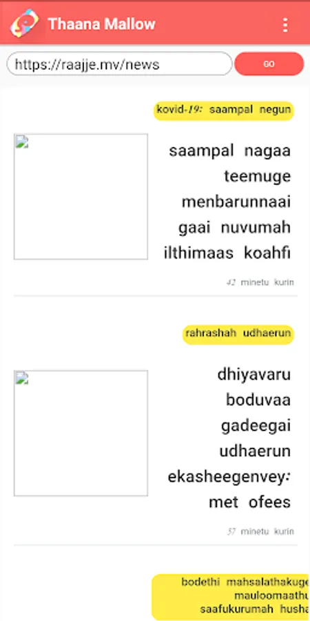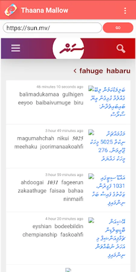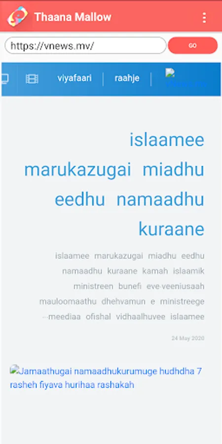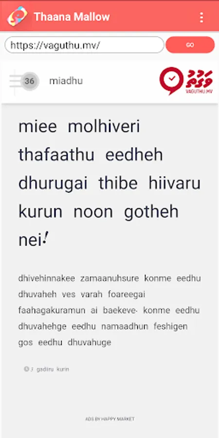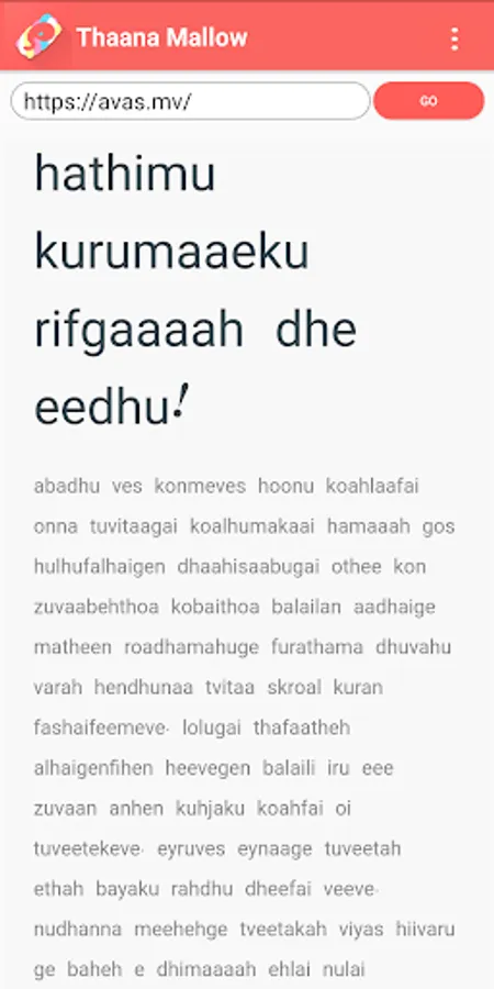 ThaanaMallow is an internet browser app that displays Dhivehi language websites in English Latin text. The app identifies Dhivehi text in the web pages and replaces the Dhivehi text with the corresponding English Latin text. This English text can then be read by native Text-To-Speech on mobile phones.