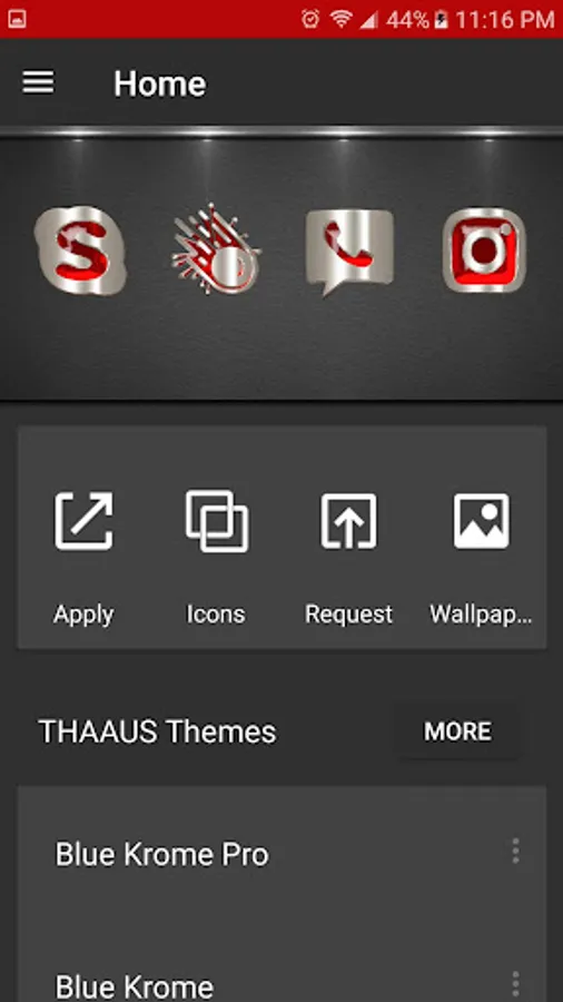 - App dashboard to apply the theme, wallpapers