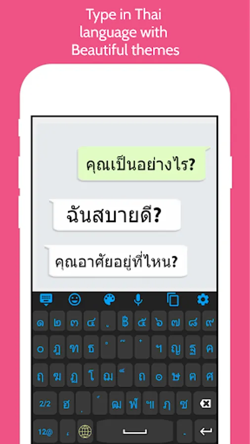 Thai Language Keyboard 2022 is unique and amazing Thai language keyboard for Thai learning, writing & chatting specially in Thailand. This keyboard is a very easy and simple keyboard app for Thai writing peoples who love to write Thai on their mobile keyboard. They can easily switch from Thai to English at the same time .You just try this app for writing Thai language characters and English language characters in one app with easy option.This Fancy Thai Keyboard is a two-language keyboard English and Thai language,you can use to write text, emails, messages and Thai quotes. The first priority of this Thai Keyboard is typing through Thi language.The keypad view is very simple and user friendly interface.ไทย คีย์บอร์ด app is free for Android users to type fast and easy.In Easy Thai Language Keyboard Thai and English keypad both works side by side.Thai language keyboard is very fast, easy and unique keypad. The New Thai language is used when you write Thai message in Thai language and Thai text words.