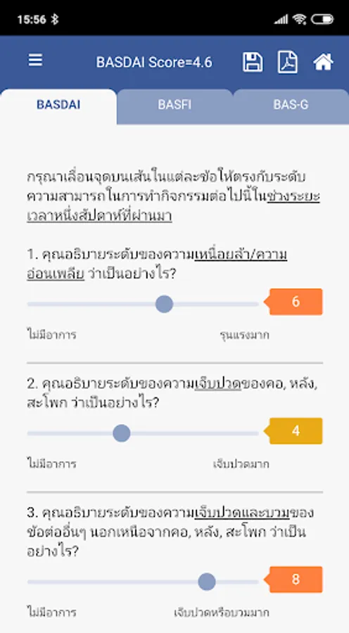 I would like to thank Professor Dr. Andrei Calin, Royal National Hospital for Rheumatic Diseases, United Kingdom, who developed the BASI1, and Lt. Col. Dr. Pongthorn Narongroeknawin, MD, Phramongkutklao Hospital, who translated and validated the Thai version of the BASI2.