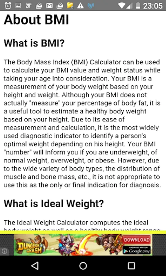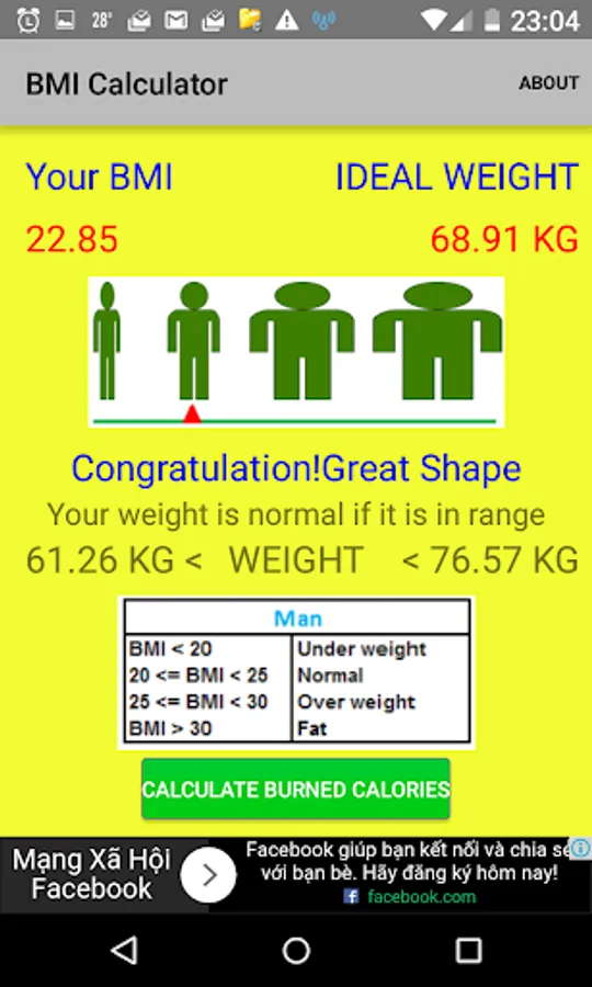 BMI Calculator calculate your BMI and make you know your body is normal or not. It is not only calculate BMI, but also calculate your ideal weight, your calories you need daily and calculate consumed calories when you run or walk. It is mean more than 1 BMI calculator it mean 1 tool to check many index of your health. You can use it everyday to check calories you exercise daily.