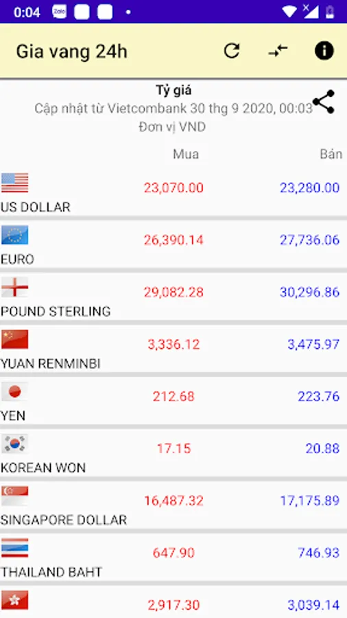 - Update rates of popular currencies from Vietcombank