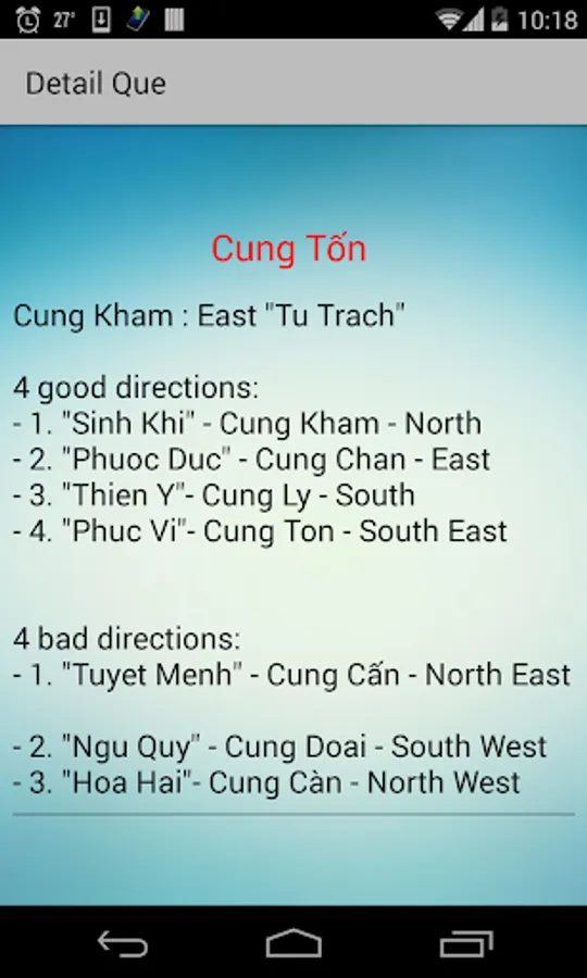 Lucky Feng Shui Directions help you know what your good direction and explain detail of each direction. It is simple and nice gui with friendly interface with human.