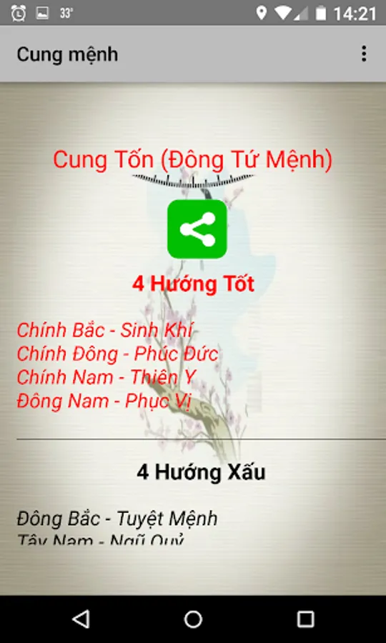 Do you know, the direction of house is very very important for everyone in Feng Shui science. Each person will have lucky direction and unlucky direction depend on the lunar year birthday. "My lucky Direction" is software for you to find lucky direction for you. You can choose the your lucky direction for choose house, choose direction in office,...