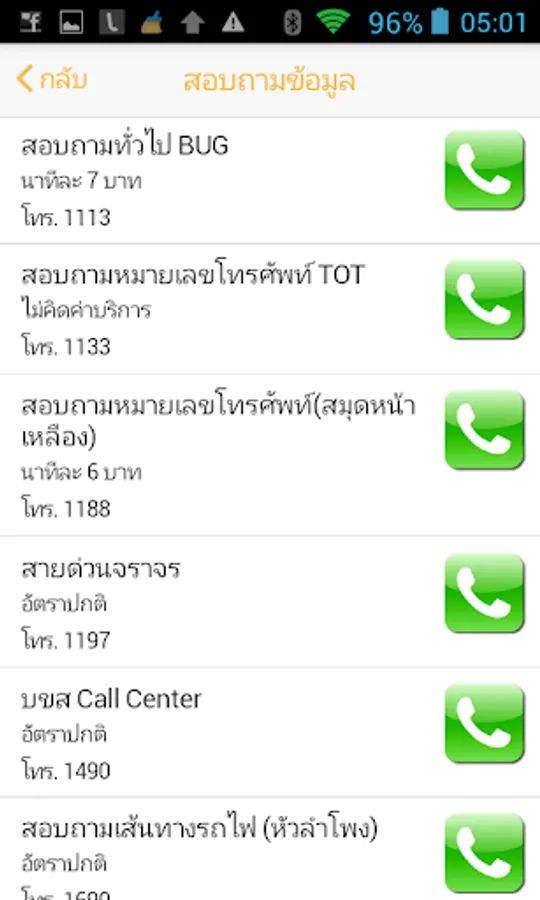 Fast call to FOOD DELIVERY, TAXI, BANK, CINEMA, INFORMATION PROVIDER, MOBILE NETWORK SERVICE and EMERGENCY CALL in Thailand. App default in Thai language but can change to English in Settings.