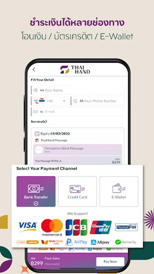 • Online payment with credit card, debit card, Bank Transfer, Alipay, WeChat Pay, Rabbit LINE Pay & True Money Wallet