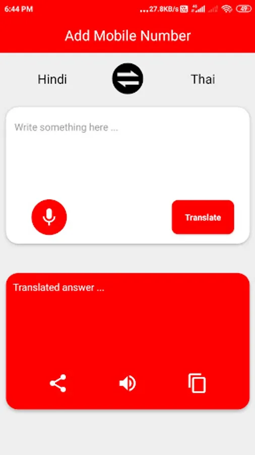 Thai Hindi Translator is the most favourite and free language translator app that helps you to translate all type of words and sentences from Hindi to Thai translation and from Thai to Hindi translation very easily. You can learn to pronaunce the words, Hindi and Thai conversations using voice recognition technology, words and phrases which are used in routine life. You can improve your power in Hindi and Thai languages by using this app. The app is very useful for people studying in foreign countries. Everyone can use this app very easily.