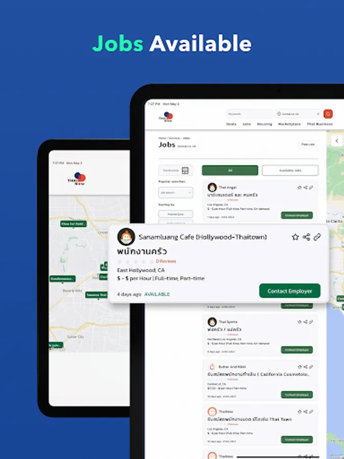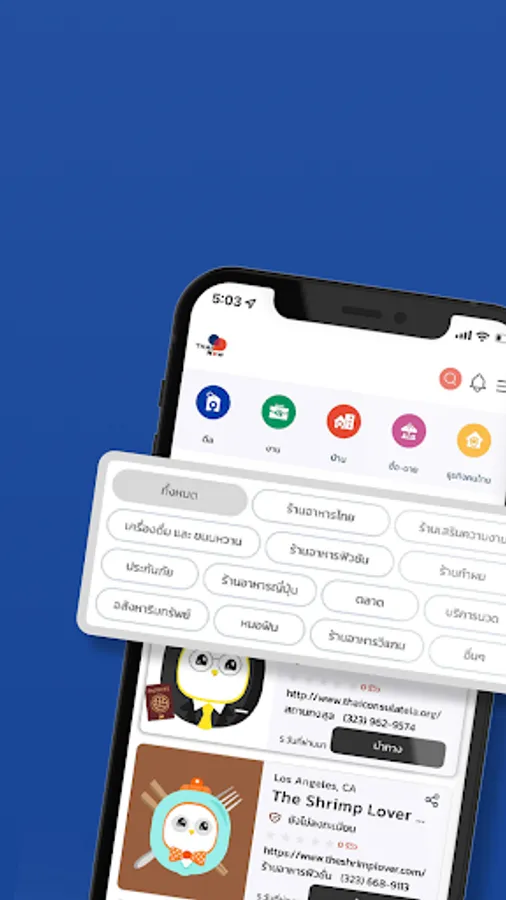 ThaiNow application aims to support and promote Thai community, Thai business, and togetherness as Thais in the United States. The application initially provides the following services: