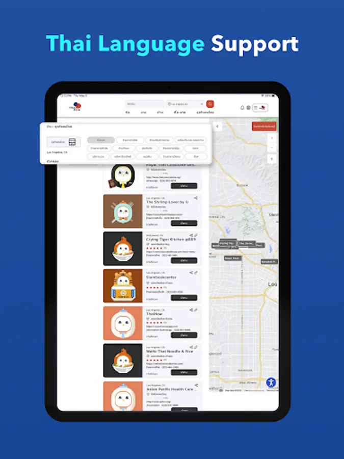 Yellow Pages for Thai business in the U.S. where a user can search for the most updated Thai business in real time across the country. A user can locate and navigate the business location and contact the business directly via phone through the application.
