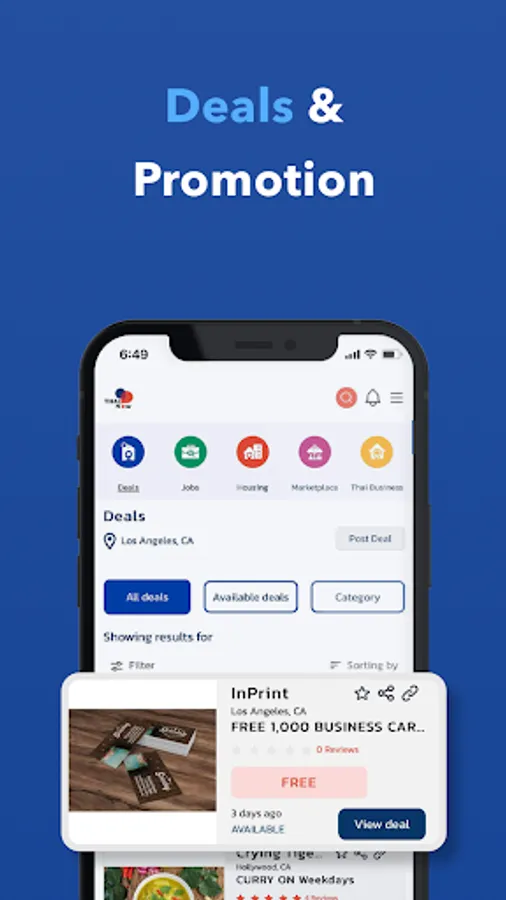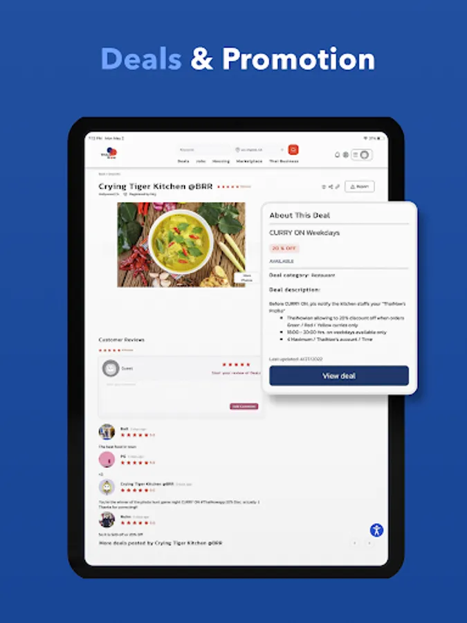 Hot Deals to support Thai business where a user can get special discount and promotion which also bring the customers to business.