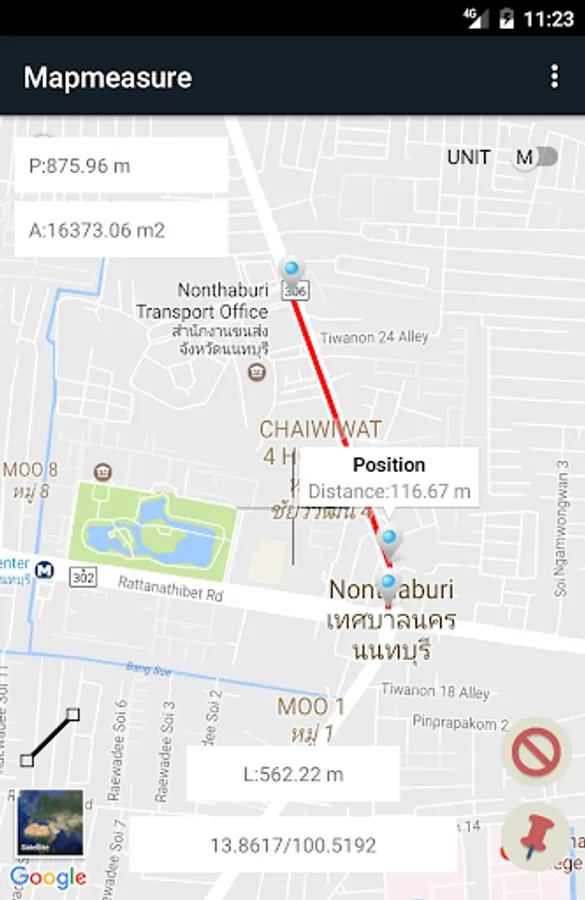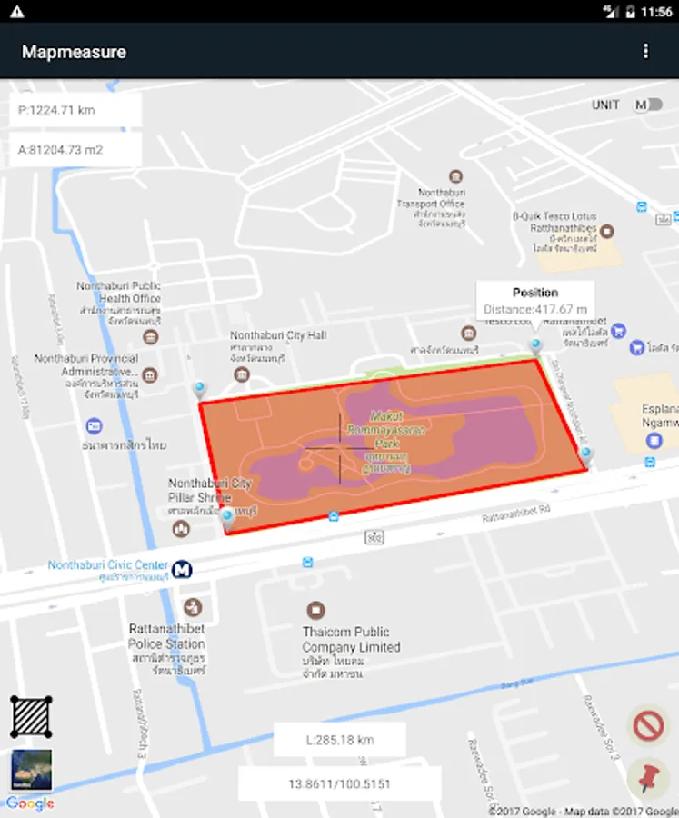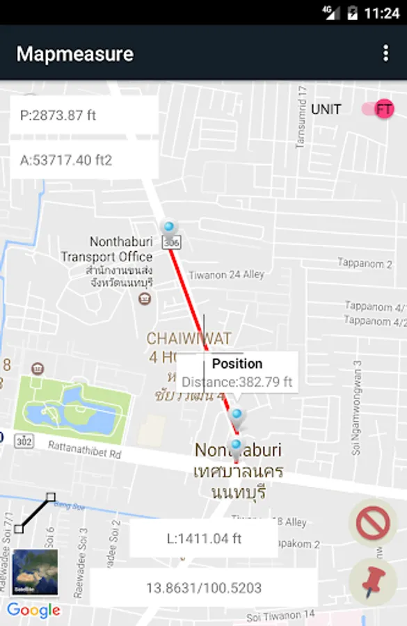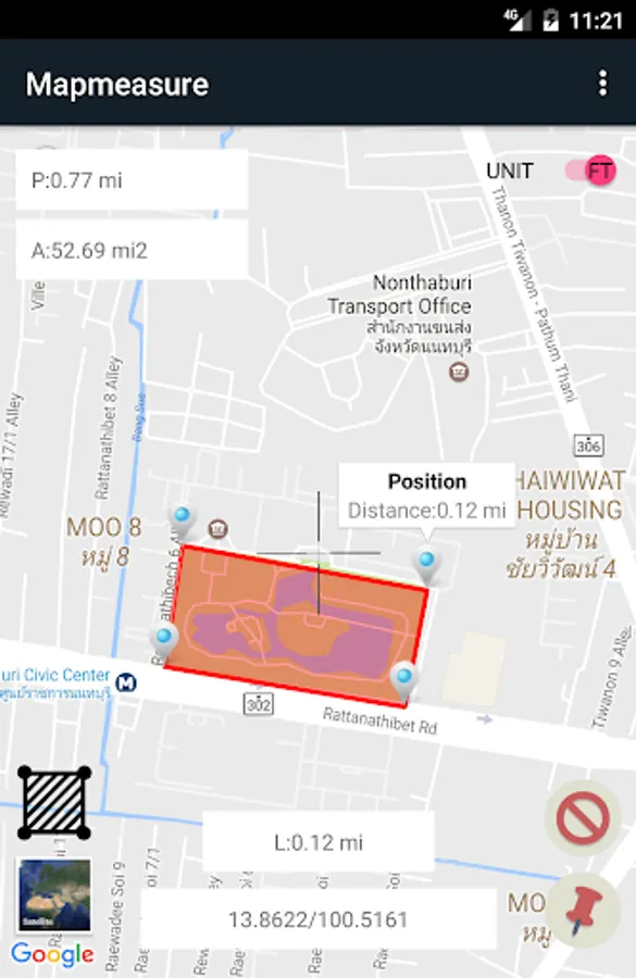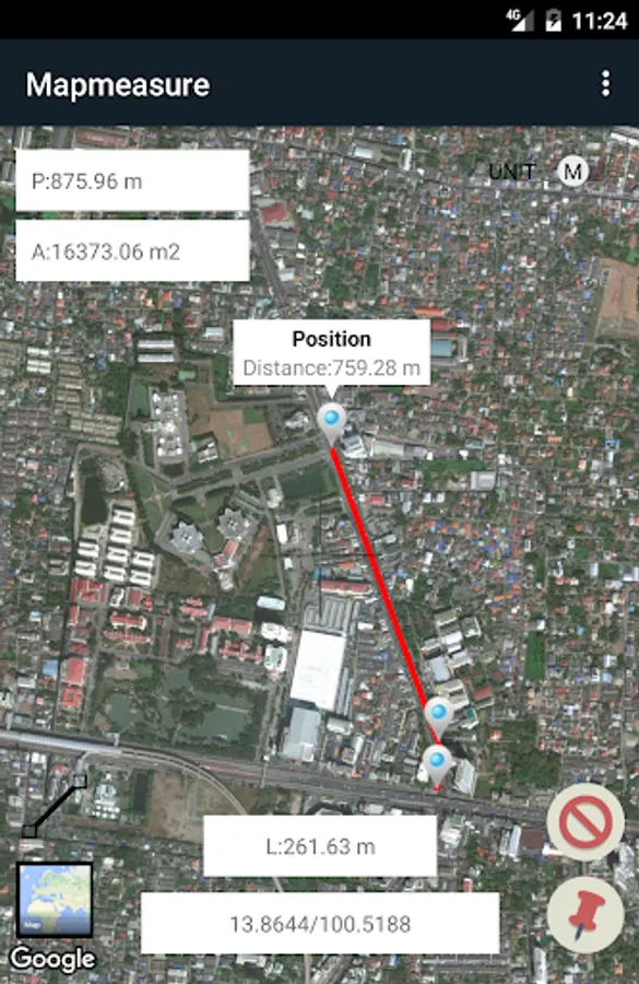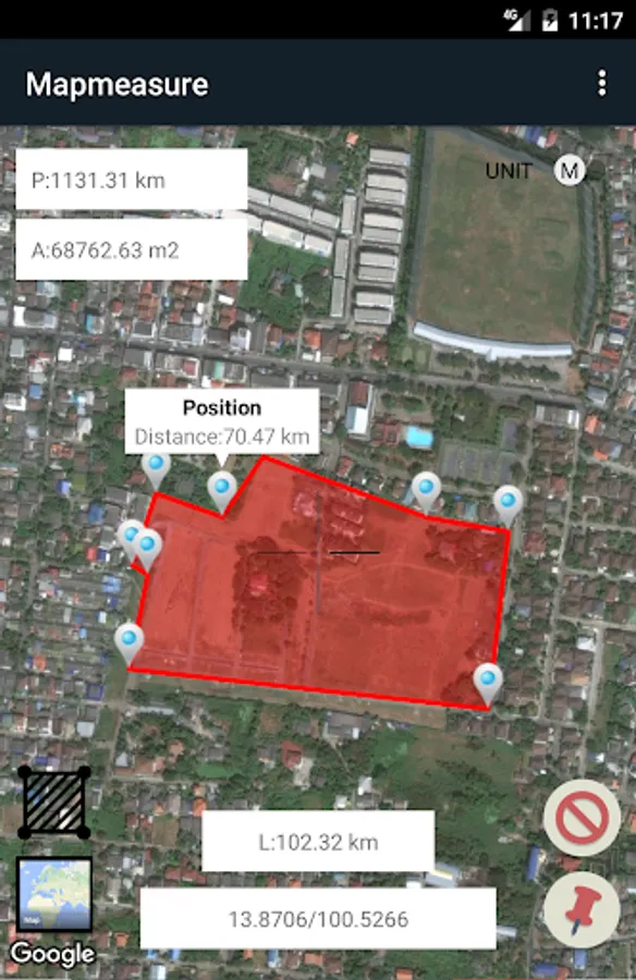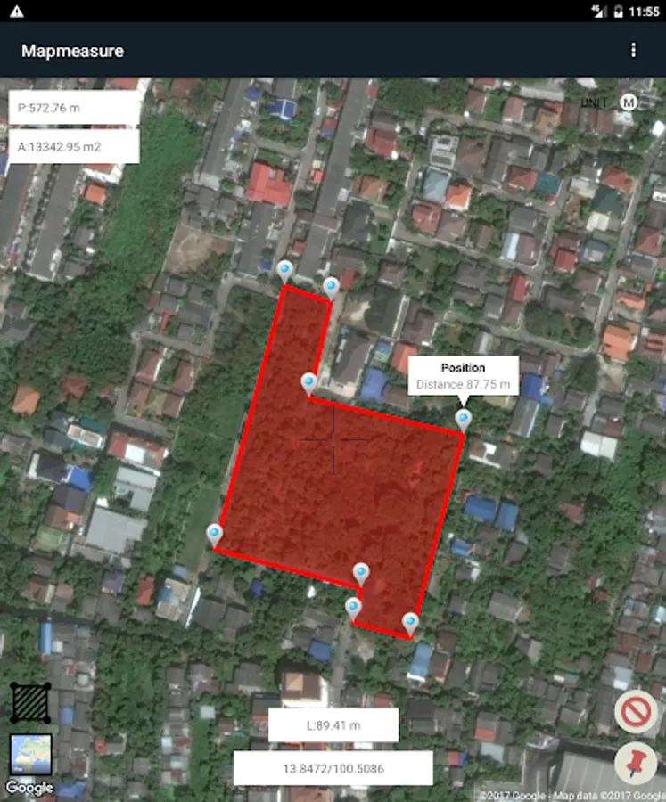 Just click on the map to add different points - maps Measure will then calculate the distance and area.