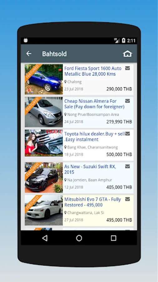Best application to find your desired cars at Thailand.All genuine deals and affordable rates.Used car in Thailand covers across Pattaya,Bangkok,Hua Hin,Chiang Mai...