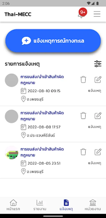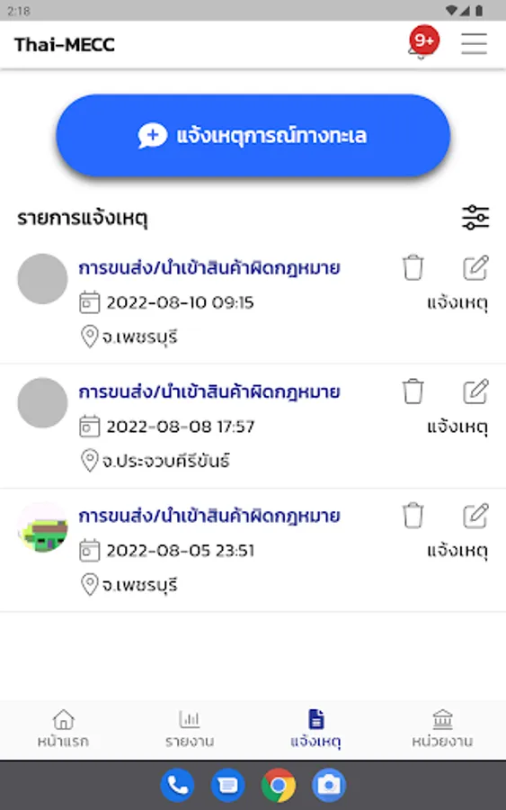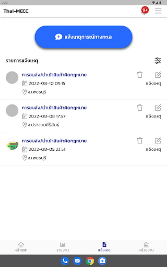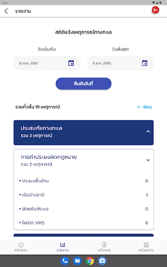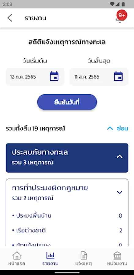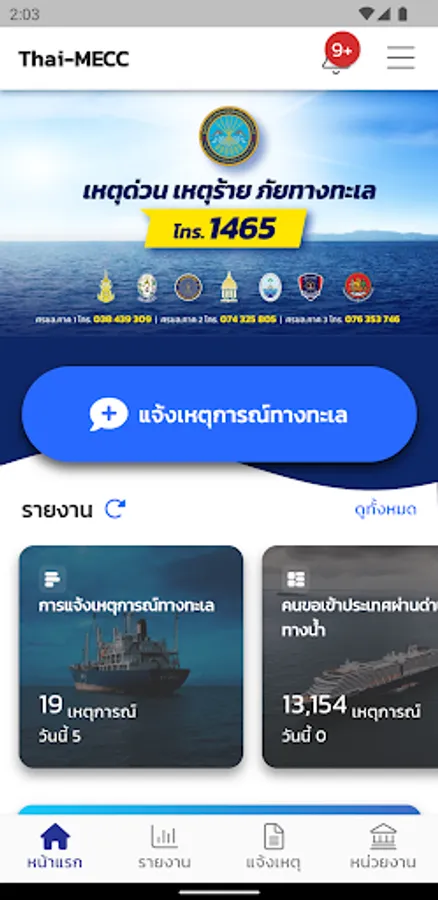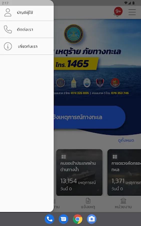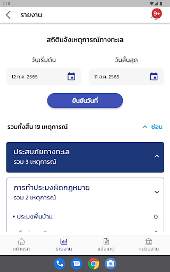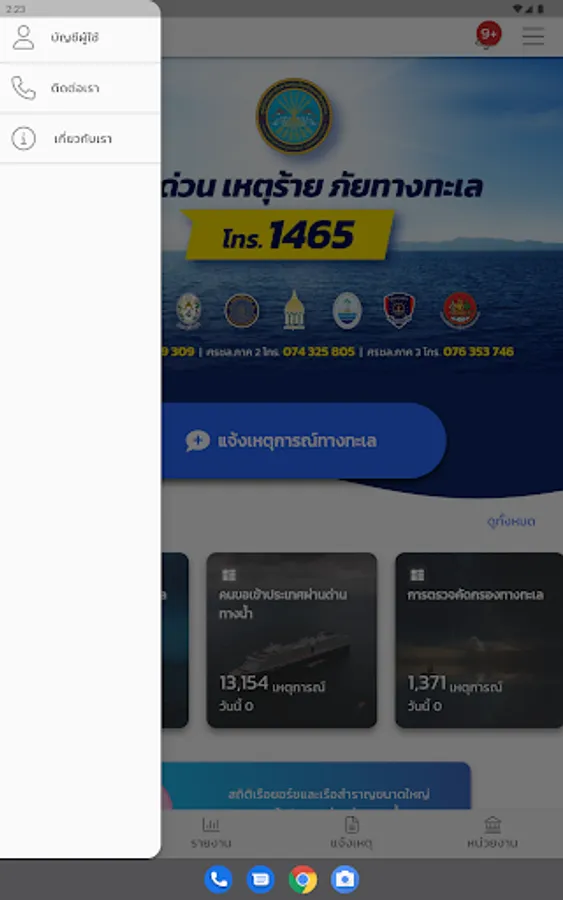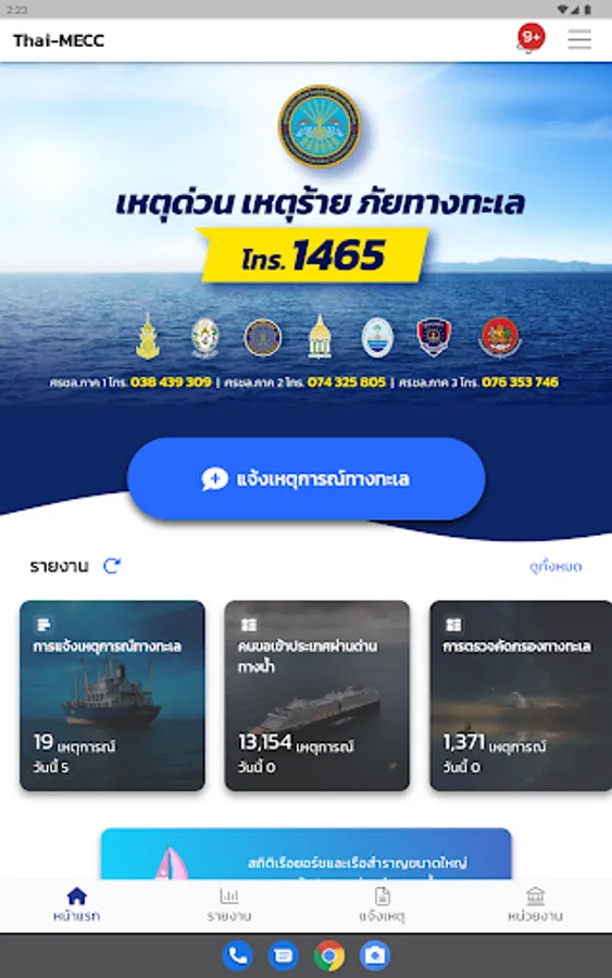 An application for notification of marine incidents. To allow Sornchon to assist under the scope of work of the Sornchon agency. including showing statistical data obtained from the Big data system of Sornchon