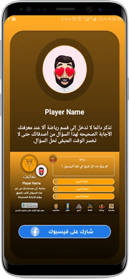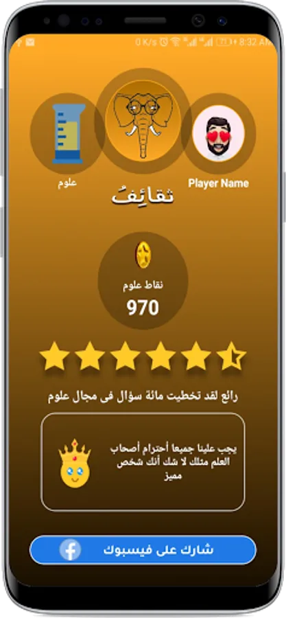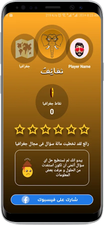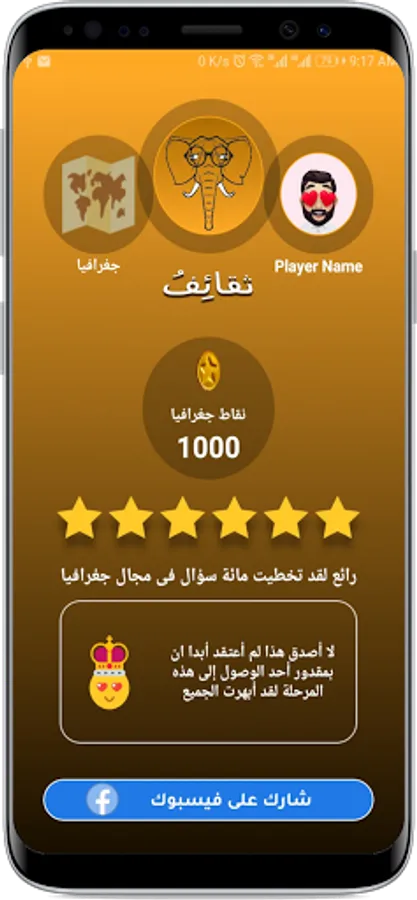 When you have answered all the questions in a specific field, you can share your achievement with friends on Facebook. Always be proud of what you have achieved.