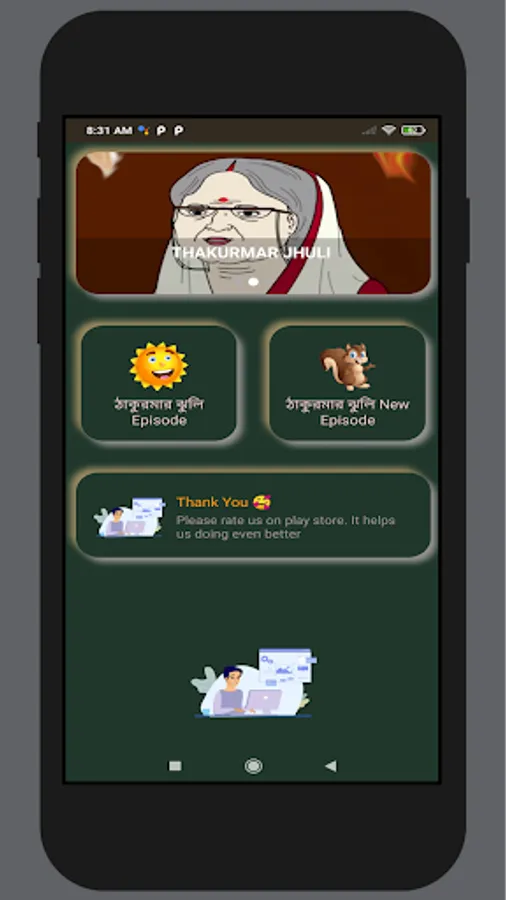 Simply can open application and watch thakurmar jhuli cartoon.