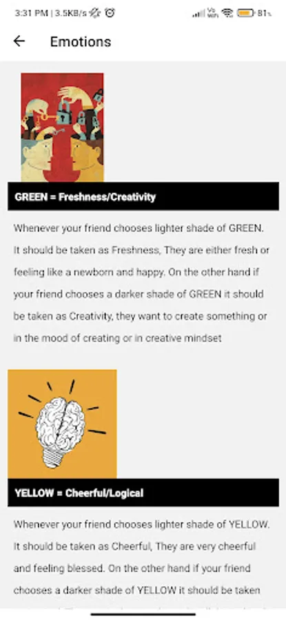 "Hi" is disguised as your feelings. No more misunderstandings on Chat. I have specified every color and their respective emotions. Find it under the "Detailed Instructions" section. Start Chatting with "Chat".