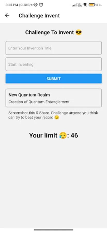 1. Create a Story/Poem/Blog/Innovative Idea/New abbreviation with a new "Challenge to Invent" section of the app.