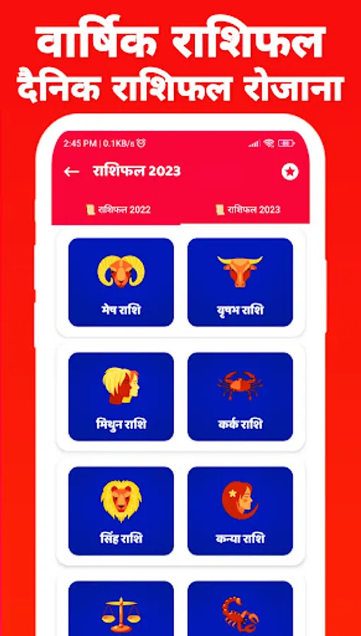पंचांग 2023 हिंदी कैलेंडर ऐप में दैनिक आधार पर सभी राशिफल हैं - दैनिक राशिफल, मासिक और वार्षिक राशिफल
