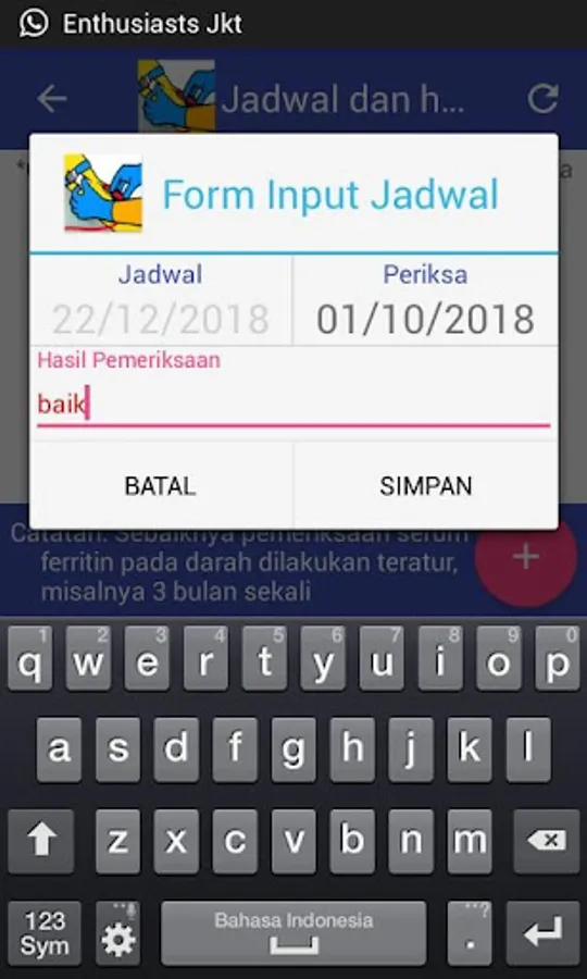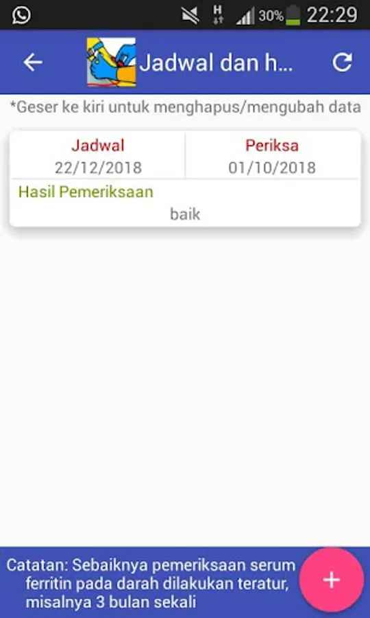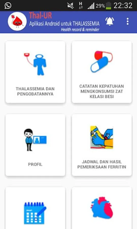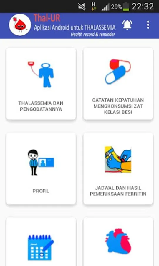 Most thalassemia sufferers are very dependent on blood transfusions and must consume iron chelates regularly. This Android-based health application is expected to increase the level of adherence of patients in taking therapy. aside from that