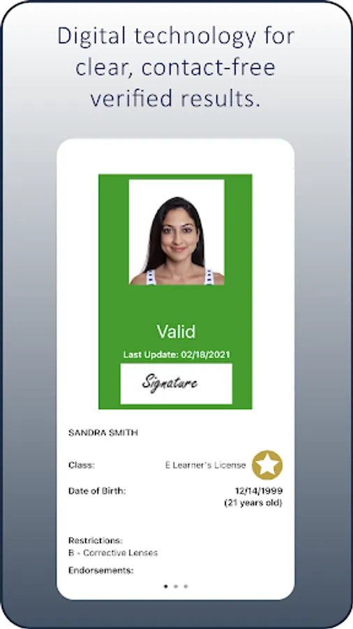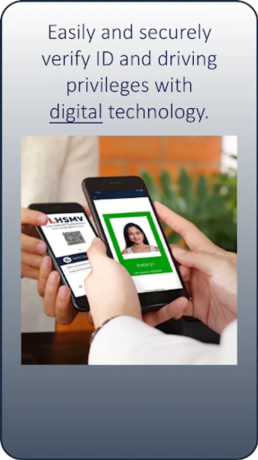 When using Florida Smart ID LE Verifier during a traffic stop, all the pertinent information is securely transmitted through a quick scan of a code displayed on the individual’s Florida Smart ID. The advanced digital verification technology provides a clear display of identity verification results in seconds.