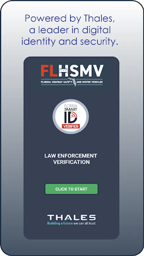 Florida Smart ID LE Verifier by Thales is the official app for Law Enforcement officers to authenticate a Florida Smart ID for proof of identity and driving privileges.