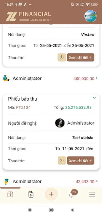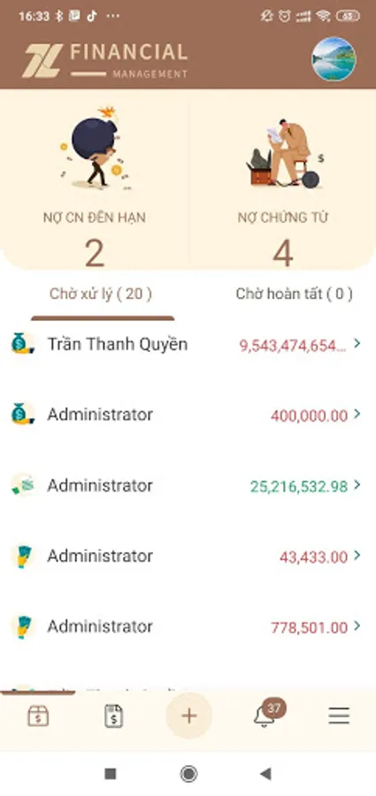 + Statistical report: Report the debt balance. Report the accounting by time of each unit.