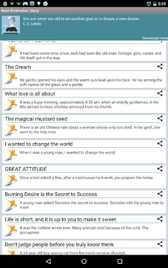 * Offline access to lots of Motivational Stories and Motivational Quotes.