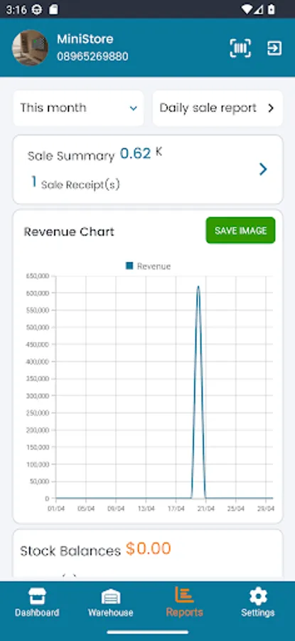 Báo cáo tổng quan, rõ ràng về: doanh thu, tồn kho, hàng bán chạy, nhập hàng, bán hàng, lịch sử giao dịch...giúp bạn nắm rõ số liệu hoạt động bán hàng trong ngày, theo định kỳ hoặc bất kỳ khoảng thời gian nào cần thống kê.