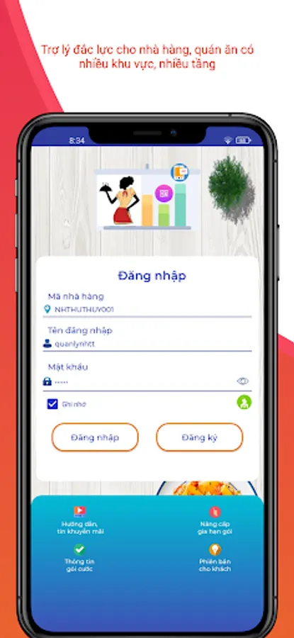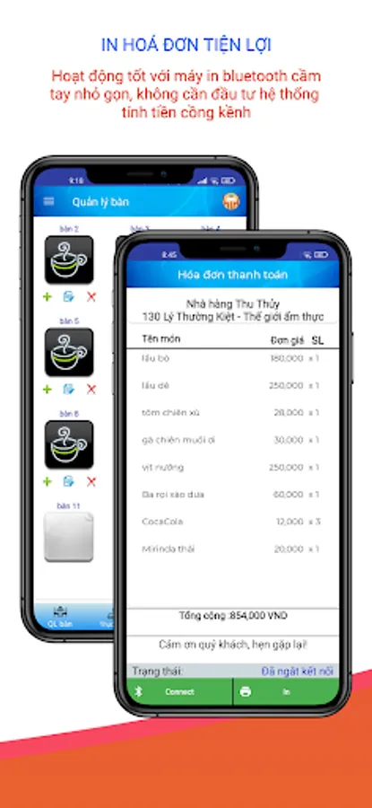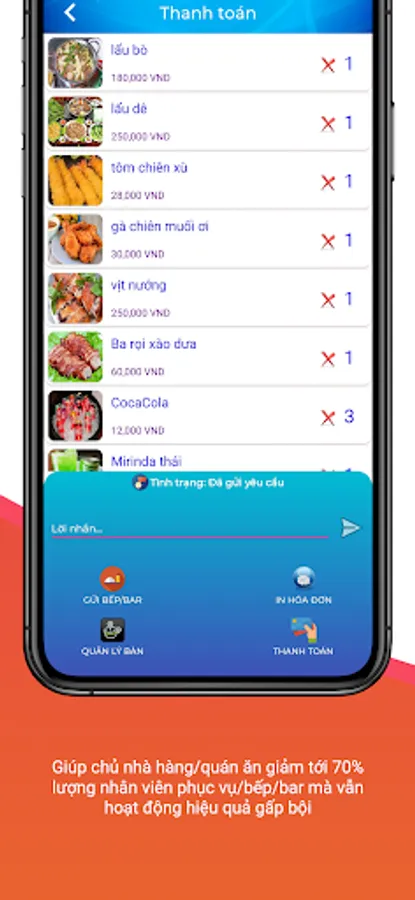 + The model of the restaurant without staff: Setup QR code pasted at the dining table to scan the dish