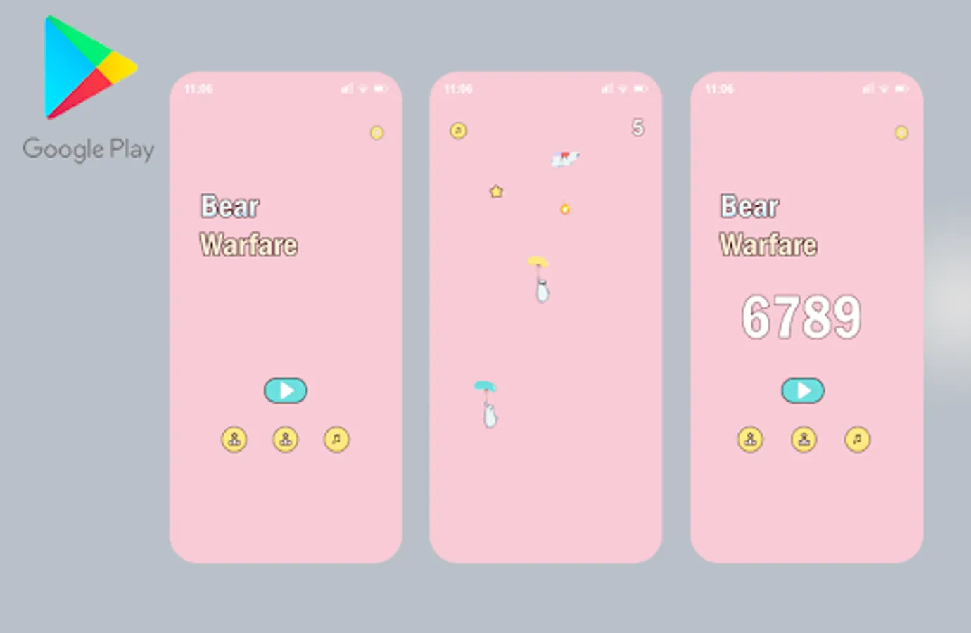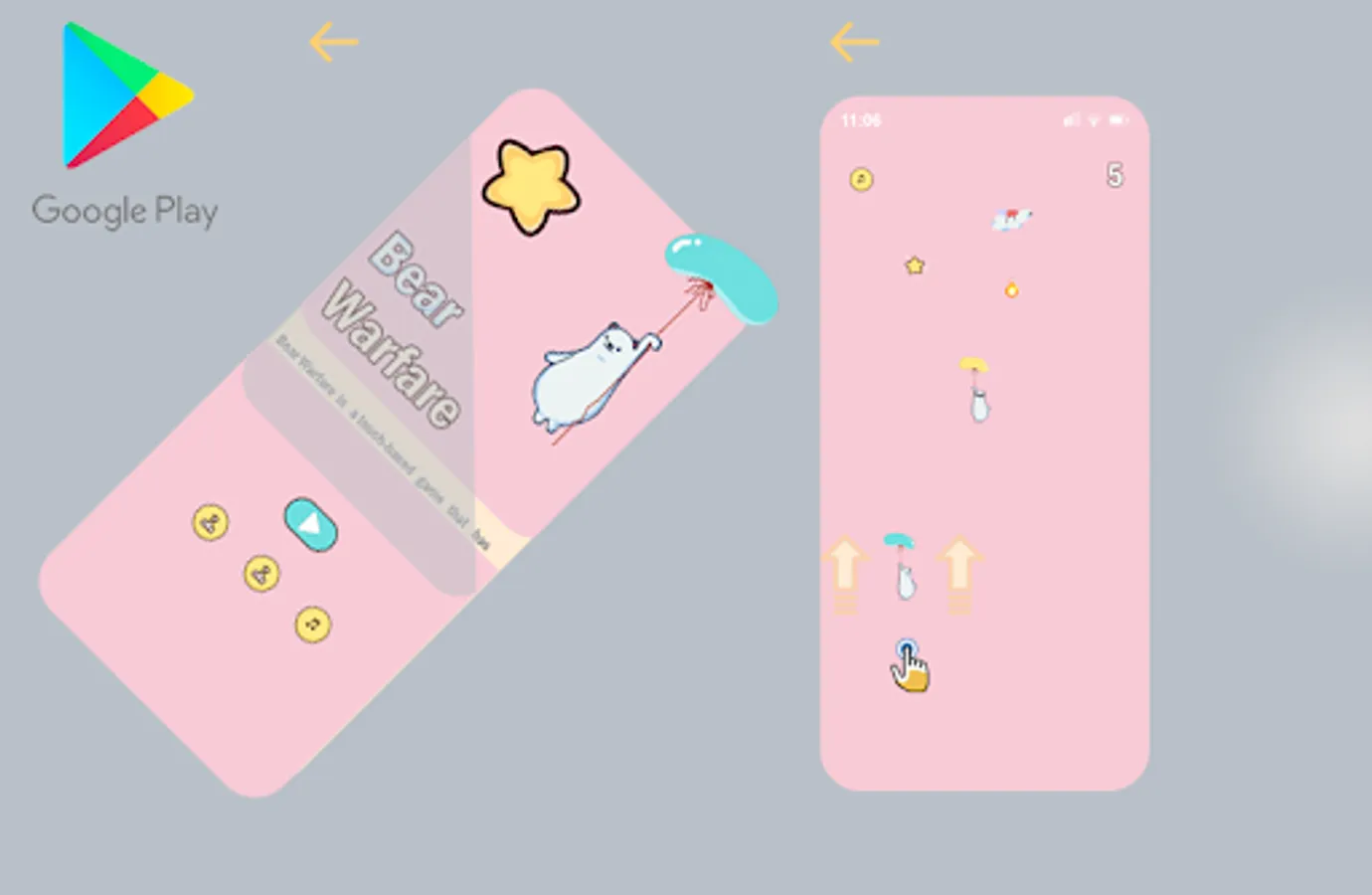 Bear Warfare is a touch-based game that has extremely simple game mechanics. Its gameplay revolves around a single mechanic of requiring players to deftly tap on the screen in order to keep the onscreen bear avatar in flight to collect coins while avoiding a series of obstacles.
