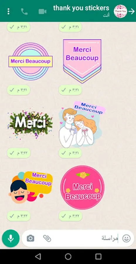 Thank you stickers The application contains more than 500 thank you stickers divided between more than 10 packages: