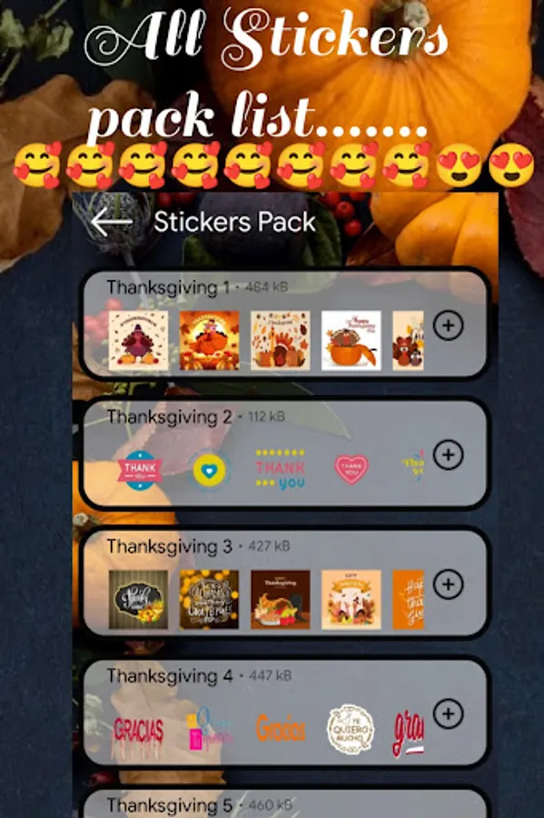 Thanksgiving Stickers sticker app for WhatsApp (WAStickerApps). Feel free to download and install all these beautiful Thanksgivingstickers for WhatsApp and use them in chats with your family, friends and love ones!
