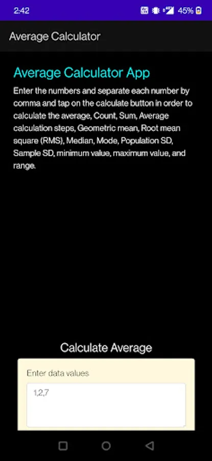 Calculating the average of any set of numbers is now made really easy with the help of this simple average calculator app.