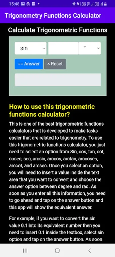 Download this Trigonometry Functions Calculator app and use it totally for free.