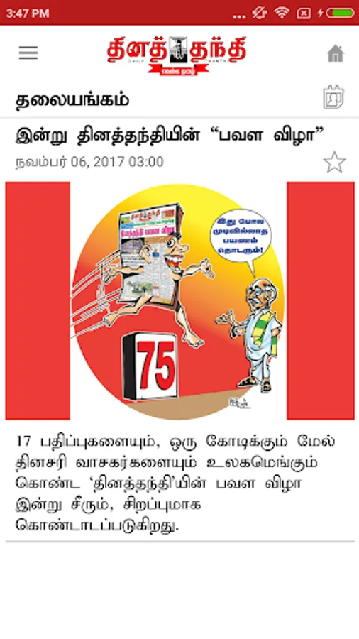 The application apart from offering easy navigation facilitates offline reading thus helping you to keep yourself abreast of all the happenings in Tamil Nadu and around the World.