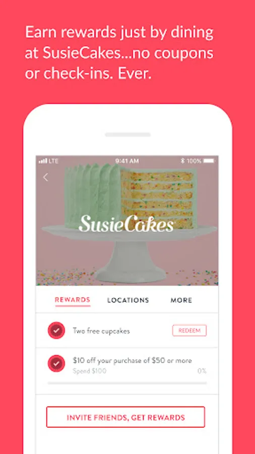 SusieCakes is an all-American bakery offering classic desserts such as cakes, cookies, cupcakes, pies, and puddings – made entirely from scratch using simple, natural ingredients. With our app you can effortlessly earn rewards at SusieCakes! Just sign up, register a credit or debit card, and earn reward progress automatically whenever you shop. But that's not all: get special offers, VIP experiences and birthday gifts just for being you! No hoops to jump through. It’s like magic.