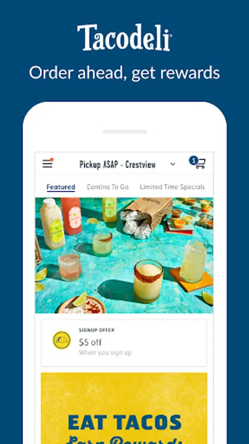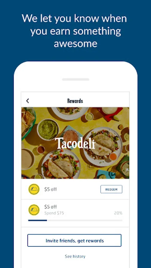 Tacodeli is a creative, chef-driven taco concept inspired by Mexican flavors and Texan hospitality. Our menu focuses on a variety of handmade tacos, dinner plates, house margaritas and award-winning salsas that satisfy a variety of diets and healthy lifestyles. Download our app to get rewards and extra perks. Here’s how it works: 1) Register your credit/debit card(s) in the app. 2) Dine as usual. No need to dig your phone out, check-in, or scan anything. Just pay as usual. 3) We’ll let you know when you earn a reward. 4) Rewards show up on your phone for you to use. Our in-app features: - Earn one point per dollar you spend, earn a $5 reward for every 75 points collected in-store, online, curbside or call-in - Order and pay in our app for delivery or pick-up - Easy re-ordering so you can get your fav taco faster - Find the closest Tacodeli to you - Invite your friends to join our rewards program and you’ll earn 25% progress toward your next reward when they make a purchase. - Check your progress toward your next reward and review available rewards - Pay with a gift card - Redeem rewards on purchases online - Access both the app and online ordering with the same login Find us on Instagram: @tacodeli, Facebook: facebook.com/tacodeli, and Twitter: @tacodeli