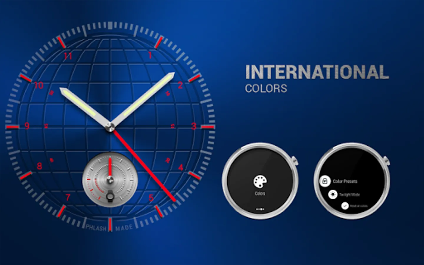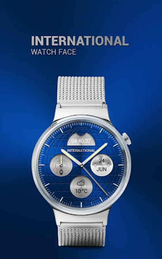 INTERNATIONAL is a modern analog and digital watch face for Android Wear 2.0 with harmonious design that balances form, function and feel. It will fill your heart with joy.