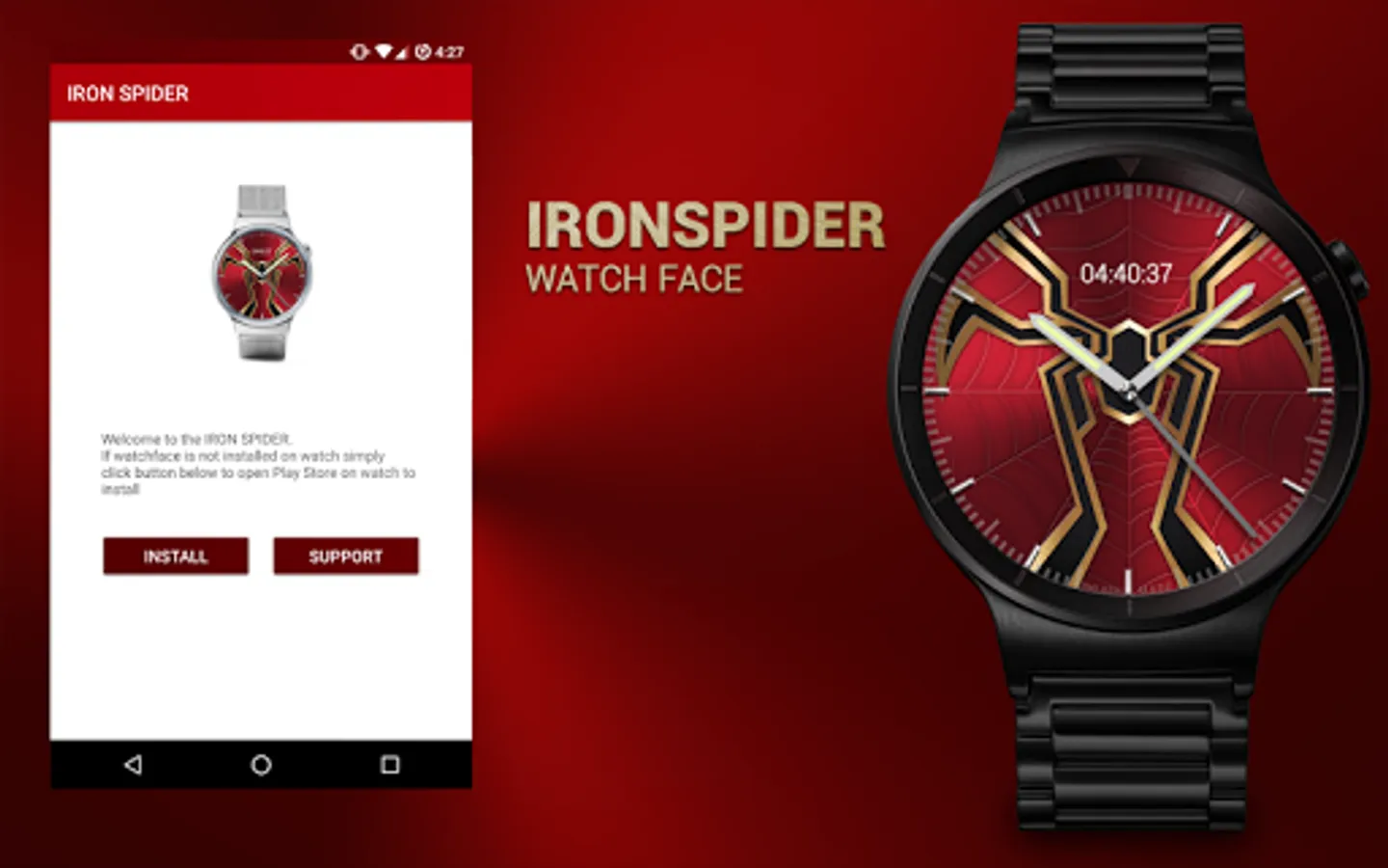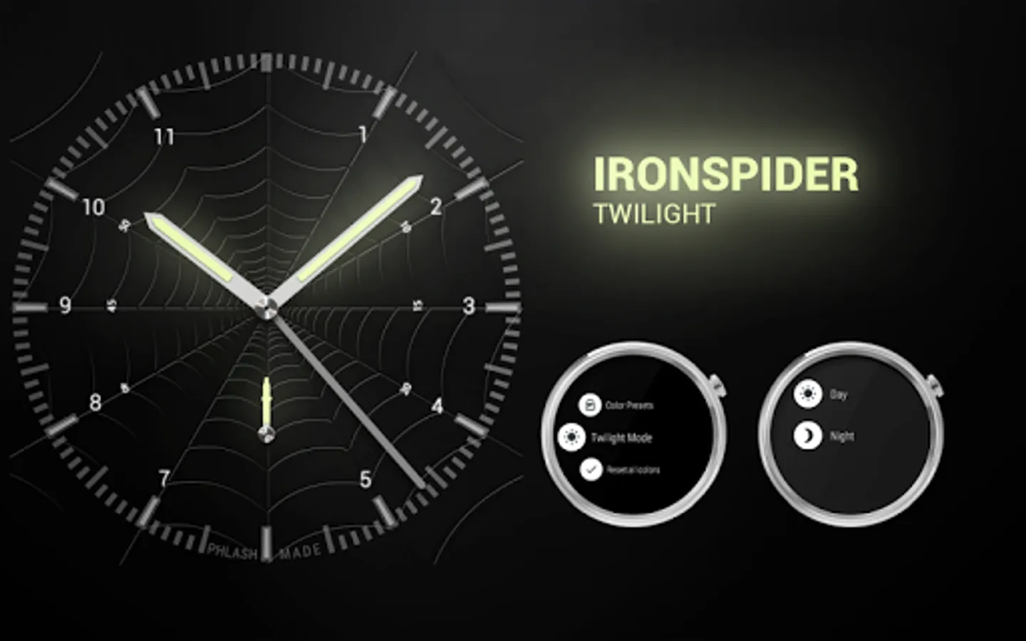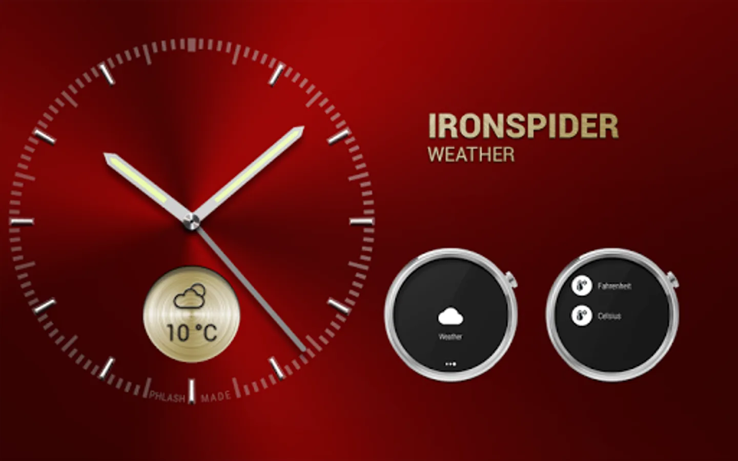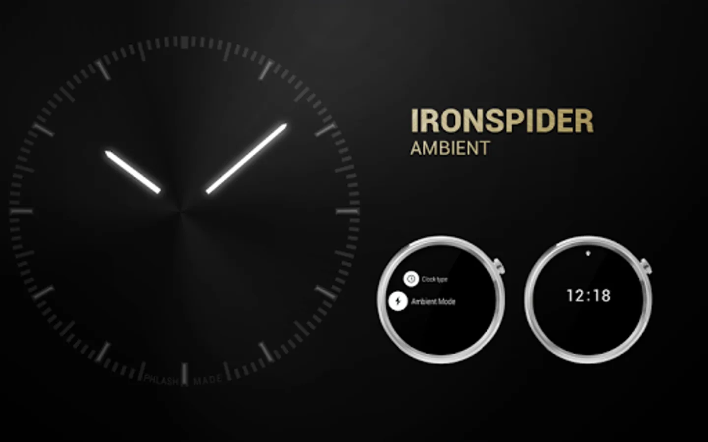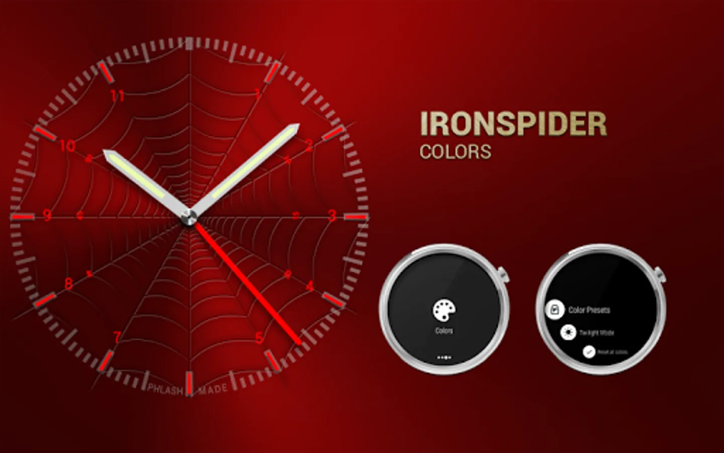 IRON SPIDER is a modern analog and digital watch face for Android Wear 2.0. Futuristic Interface with many settings and a clean look. The customization options are accessible by long pressing the watch face on your watch (simply click the "gear icon" when in the watch face selection screen.)
