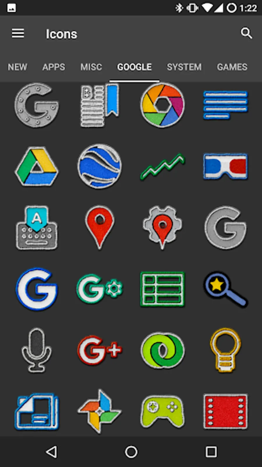 These icons are made out of a piece of embroidery which is created by using a fabric backing and thread. The art of making embroidered patches is decades old and was originally done by hand. Now you can have them on your phone and since they are incredibly detailed you can become a experienced patch collector.