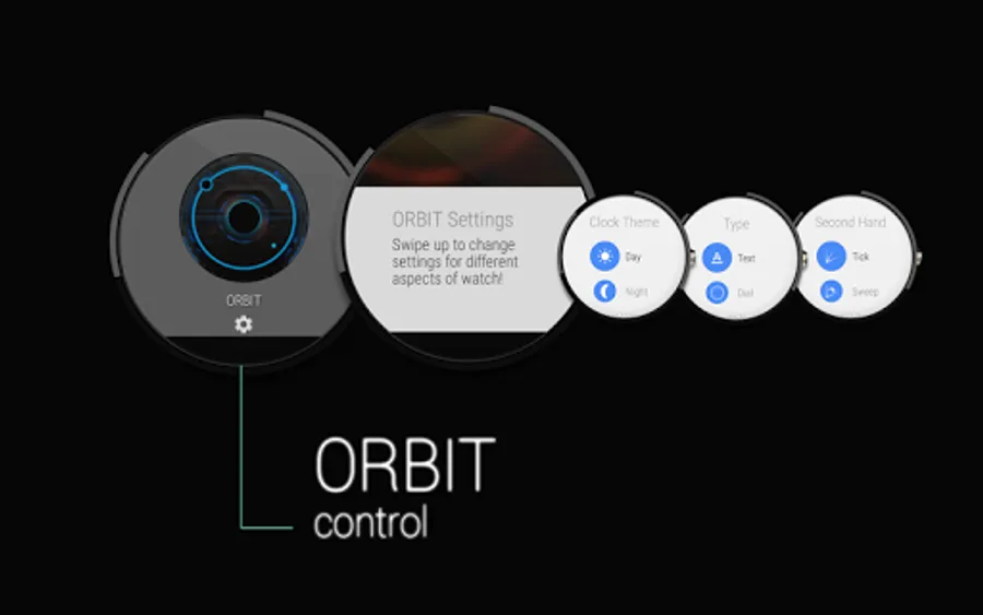 ORBIT is a modern analog watch face for Android Wear with the mechanics of orbital motion, which accounts for gravity as due to curvature of space-time.