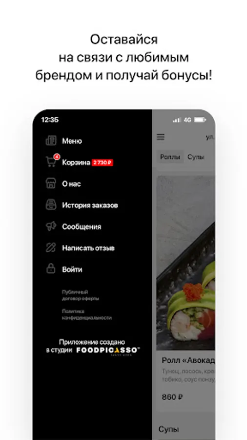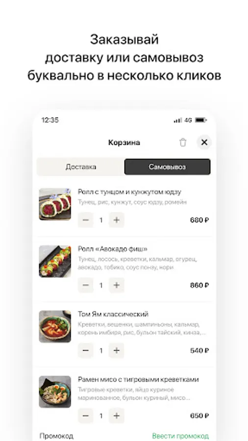 Fans of Asian cuisine can try salmon ceviche with yuzu sauce, tuna with stracciella and avocado, hand roll with Kamchatka crab, baked scallops with mozzarella cheese, grilled crab and scallop roll, cold ramen and much more. Fast, convenient, simple, delicious!