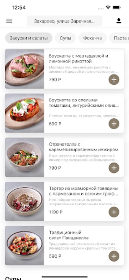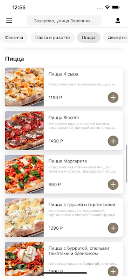 Application for ordering delivery from Sincero restaurant