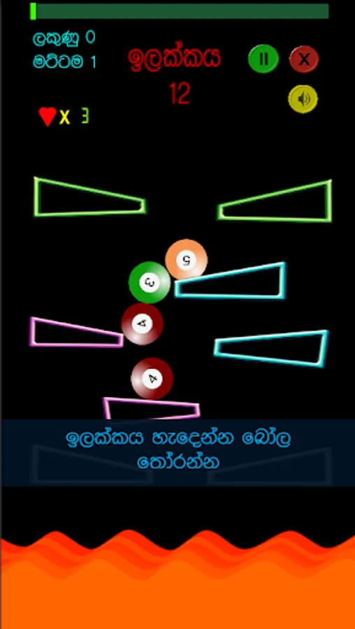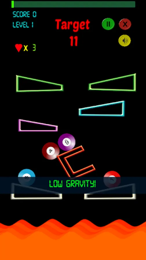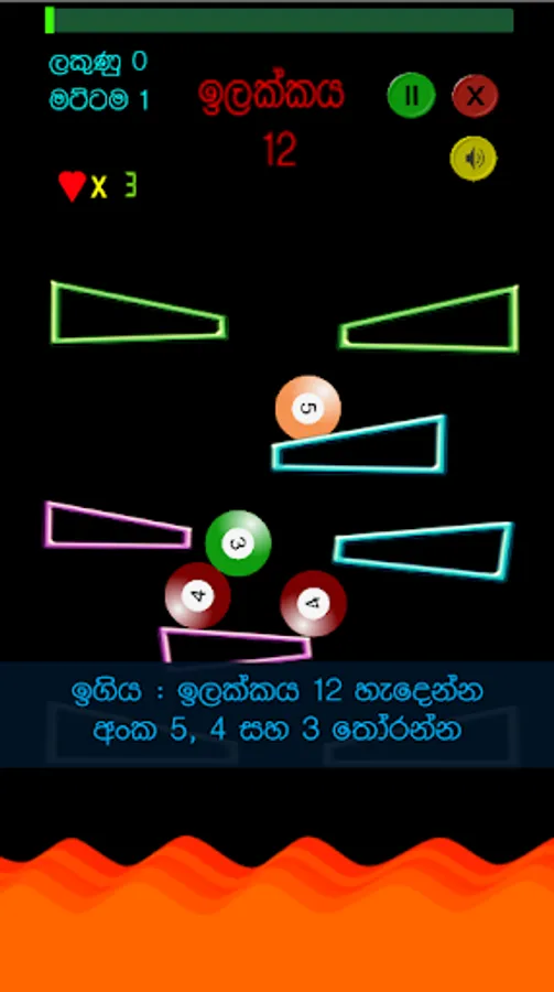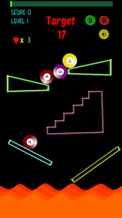 Keep and eye on the "Target Number" and select numbered balls to make a sum matching with "Target"! That's the only way you can rescue numbered balls before they fall into lava!