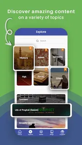 A Powerful Explore Tab: Find various content types organised into categories and subcategories for the first time on an Islamic learning app.